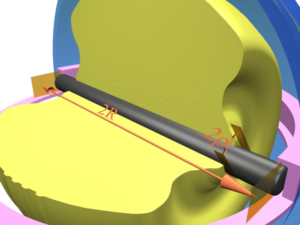 - Ротор — элемент, который может вращаться как вокруг собственной оси, так и в плоскости проходящей через ось вращения ротора по круговой канавке.