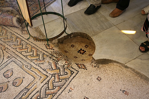 - На месте первого и второго обретения располагается часовня Обретения Главы Иоанна Предтечи Елеонского Спасо-Вознесенского монастыря. Место первого и второго Обретения главы святого Пророка представляет собой углубление в полу часовни, выложенное цветной мозаикой геометрического рисунка. Оно защищено легким металлическим ограждением с иконой «Обретения главы святого Иоанна Крестителя». Мозаичный пол обнаружен во время раскопок архимандритом Антонином (Капустиным).[10].