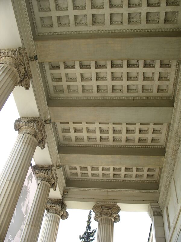 Предполагалось, что музей будет открыт только в дневное время, поэтому предусматривалось естественное освещение экспонатов за счёт массивной стеклянной крыши. Свод музея был спроектирован инженером Владимиром Шуховым, создавшим уникальные конструкции при помощи арочных стяжек[11]. Фасад музея украшают фризы с изображениями Олимпийских игр, выполненные скульптором Гуго Залеманом[12].