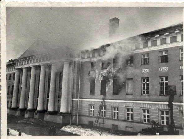 В ночь на 21 декабря 1965 года в здании произошёл пожар, который разрушил 900 квадратных метров (общая площадь основного здания 6255 квадратных метров). Здание было восстановлено к 1 сентября 1966 года, однако восстановление актового зала затянулось до 28 апреля 1967[2].