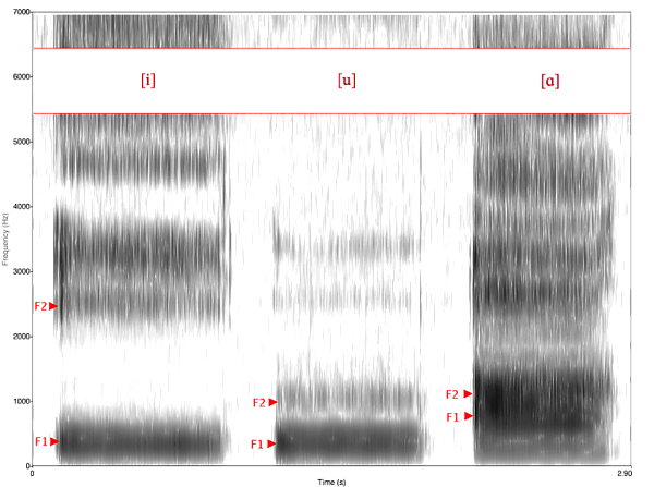 Акустически при произнесении гласных звуков выделяется достаточно много энергии по всему спектру (что хорошо видно на осциллограммах), однако для распознавания гласных обычно достаточно информации, содержащейся в частотах ниже 4-5 кГц.