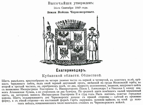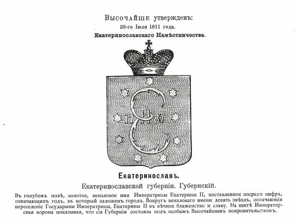 - Екатеринославская губерния — «золотое вензелевое изображение Имени Императрицы Екатерины II» и дата.