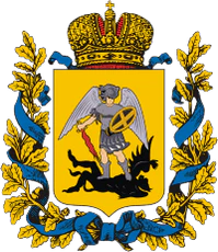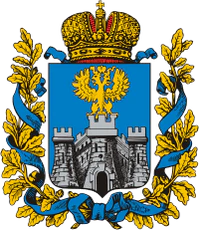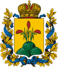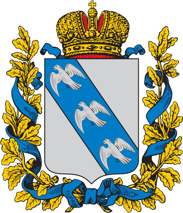 - Орловская губерния — золотой Императорский [двуглавый] орёл на высокой средней башне серебряной крепости.