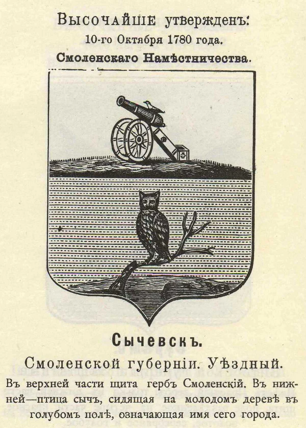 - Сычёвск (1780) — птича сыч.