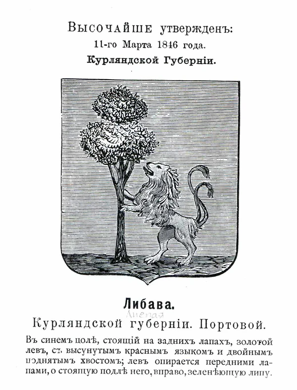 - Либава (1846) — стоящий на задних лапах лев опирается на зеленеющую липу.