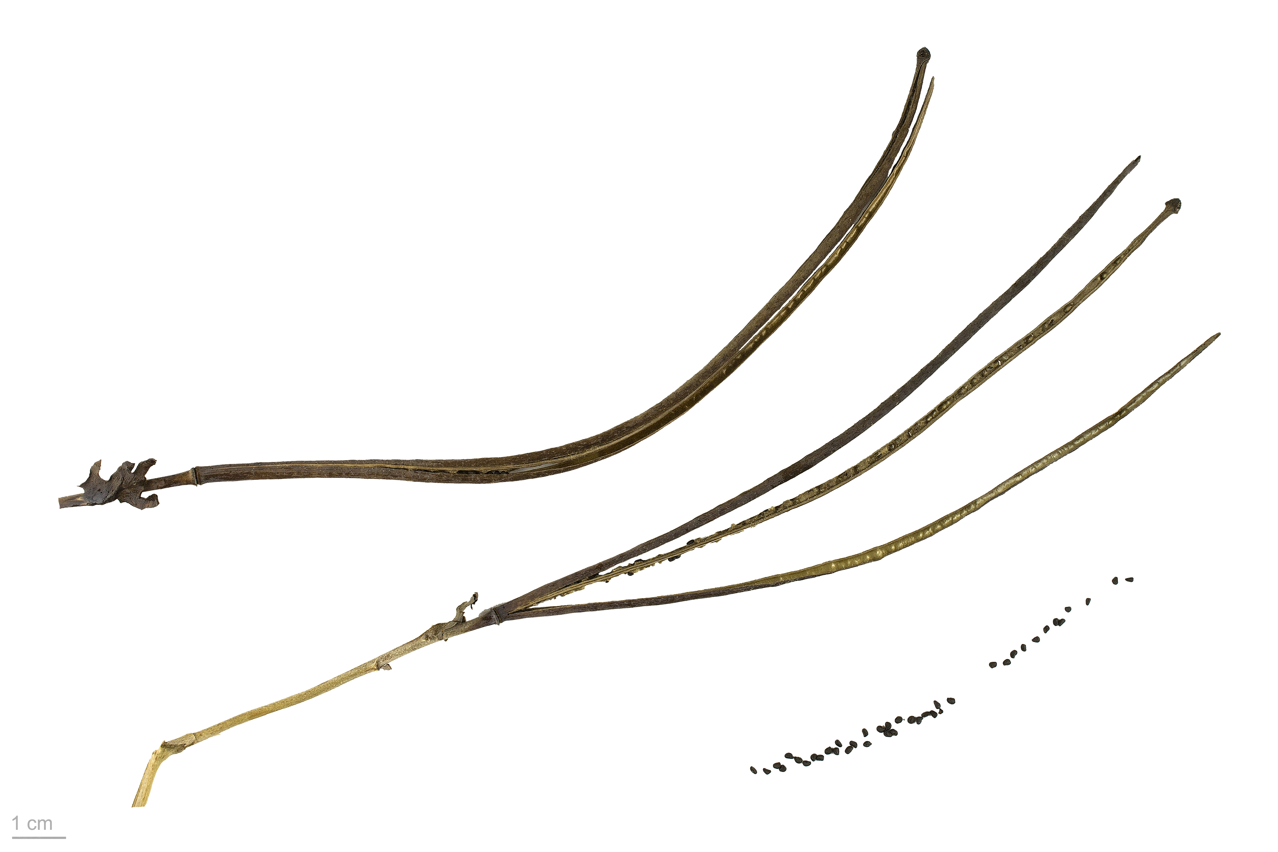 Стручки (или стручковидные коробочки) длиной 15—25 см, прямые или слегка дуговидные, с рассеянными белыми бугорками, иногда почти голые. Рыльце шириной около 4 мм.