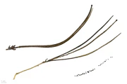 Ботаническая иллюстрация из книги Франсиско Мануэля Бланко Flora de Filipinas, 1880—1883. Лист. Цветок. Образцы побегов растения с семенами. |