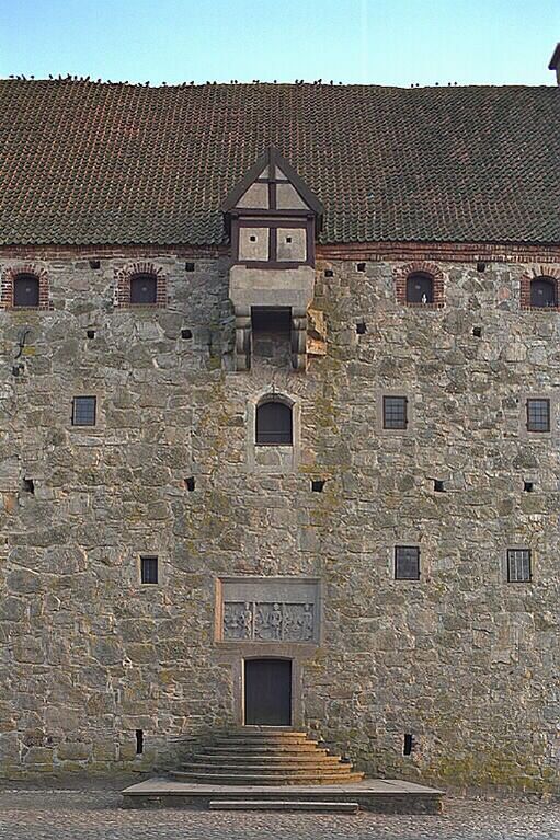 В здании предусмотрено четыре этажа. Основным строительным материалом для внутренних помещений служил песчаник и кварцит, привезённый с побережья в Симрисхамне. Угловые элементы, дверные и оконные проёмы, а также нижние ступени лестницы выполнены из более прочного известняка, доставленного с острова Готланд.