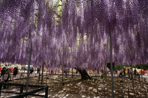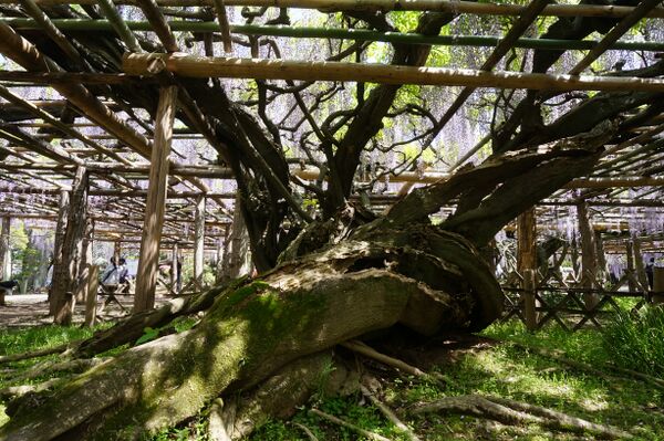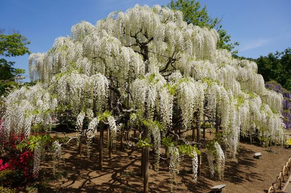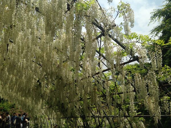 Глицинию используют в озеленении частных домов и парков. На Востоке принято любоваться цветущей глицинией — такая же национальная традиция, как любование сакурой и цветами. Глицинии, увивающие подпорки или решётки, формируют тоннели или навесы, с которых почти до самой земли свешиваются разноцветные кисти соцветий. Популярные места для любования глициниями — сад Кавати Фудзи в Фукуоке и цветочный парк Асикага площадью более восьми гектаров в Тотиги[17][8].