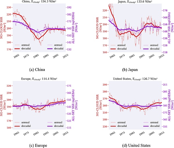 - ↑ Wild, Martin; Wacker, Stephan; Yang, Su; Sanchez-Lorenzo, Arturo (1 February 2021). “Evidence for Clear-Sky Dimming and Brightening in Central Europe”. Geophysical Research Letters. 48 (6). Bibcode:2021GeoRL..4892216W. DOI:10.1029/2020GL092216. HDL:20.500.11850/477374. S2CID 233645438.