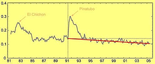 Уже давно известно, что любое воздействие аэрозолей на солнечную радиацию неизбежно повлияет на радиационный баланс Земли. Снижение температуры атмосферы уже наблюдалось после крупных извержений вулканов, таких как извержение вулкана Агунг в Бали в 1963 году, извержение Эль-Чичона в Мексике в 1982 году, извержение Невадо-дель-Руис в Колумбии в 1985 году и извержение вулкана Пинатубо на Филиппинах в 1991 году. Однако даже крупные извержения приводят лишь к временному увеличению количества частиц серы, в отличие от более устойчивого роста, вызванного антропогенным загрязнением.