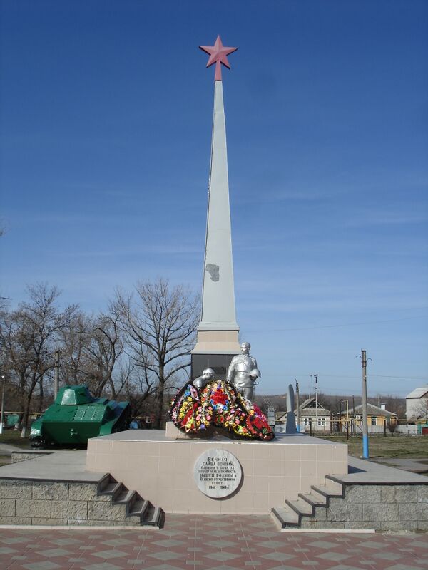 - мемориальный комплекс погибшим в Великой Отечественной войне (кроме обелиска, Вечного Огня и братских могил) включает в себя: винт от самолёта Су-2 Героя Советского Союза А. Иванова и один из немногих сохранившихся лёгких танков Т-60);
