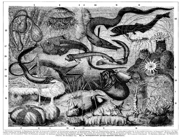 Среди глубоководных животных больше всего распространены иглокожие, ракообразные, моллюски и многощетинковые черви.