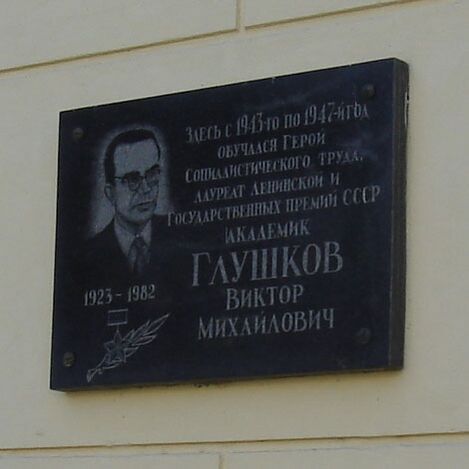 Ви́ктор Миха́йлович Глушко́в (24 августа 1923 года, Ростов-на-Дону, РСФСР, СССР — 30 января 1982 года, Москва, СССР[4]) — советский математик, кибернетик. Доктор физико-математических наук (1955), профессор (1957[5]). Директор-основатель Института кибернетики НАН Украины (с 1962 г.). Вице-президент АН УССР (с 1962; член с 1961, членкор с 1958[5]), академик АН СССР (1964) и «Леопольдины» (1970).