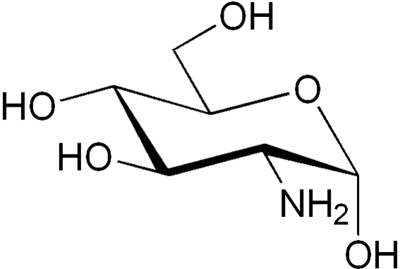 По химической структуре глюкозамин является моносахаридом, служит в качестве важного прекурсора в биохимическом синтезе гликозилированных белков и липидов. Поскольку глюкозамин представляет собой предшественник гликозаминогликанов, которые являются основным компонентом суставных хрящей, на этом было основано предположение, что его применение может способствовать восстановлению хрящевой ткани и лечению артрозов.