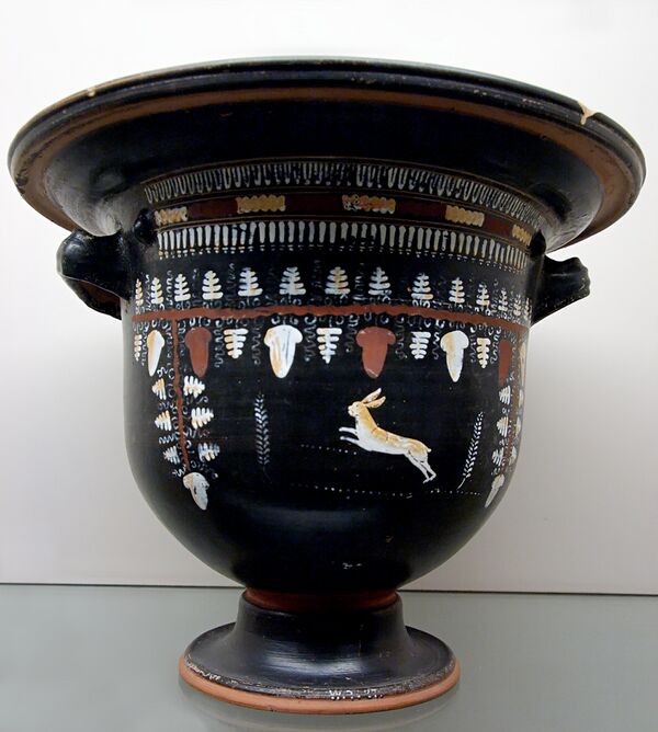 Формы таких изделий — амфор и амфорисков, кратеров, пелик, ойнохой и скифосов, пиксид, киафов — довольно вычурны: контрасты тонкой шейки и широкого тулова, больших венчиков с волнистой закраиной и длинной, сплетённой из нескольких жгутов ручки или носика. В этих особенностях формы и декора очевидно влияние дорогих металлических изделий из золота и позолоченного серебра того времени[3].