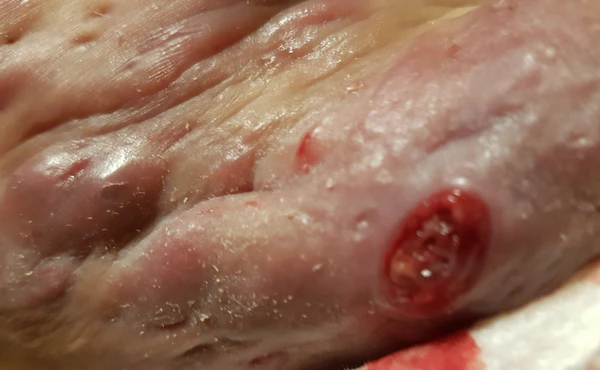 | 5 стадия (тяжёлая) | абсцессы или свищи с отделяемым — 2-5 и воспалительные узелки/узлы — ≥10 |