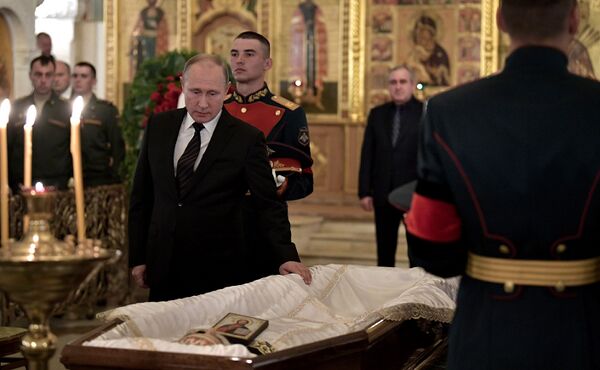 Прощание и отпевание состоялись 16 июня 2018 года в Преображенской церкви Храма Христа Спасителя. Похоронен на Новодевичьем кладбище Москвы рядом с могилами народных артистов СССР Олега Табакова и Леонида Броневого[39].
