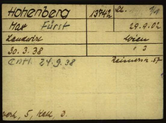 14 мая 1938 года Максимилиан и его младший брат Эрнст, выступившие за независимость Австрии и против аншлюса с Германской империей, были арестованы и отправлены в концентрационный лагерь в Дахау. Будущий федеральный канцлер Леопольд Фигль вспоминал, что братья стойко сносили все унижения заключения и по-товарищески относились к другим узникам. Благодаря ходатайствам жены перед Германом Герингом Максимилиан был освобождён через полгода заключения, а Эрнст был переведён в другой концентрационный лагерь и вернулся домой только в 1943 году. После освобождения Максимилиан был помещён под домашний арест в замке Артштеттен, а имущество семьи было конфисковано.