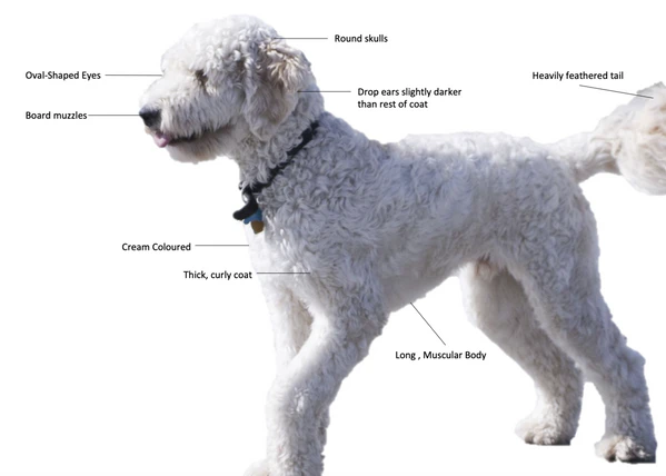В целом, у голдендудлей круглый череп, широкая морда, покрытый длинной шерстью хвост, висячие уши и овальные глаза[5]. От ретриверов голдендудли получили длинное и мускулистое тело, глубокую грудь и широкую стойку[7].