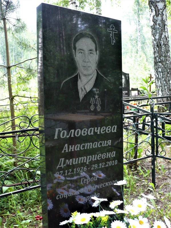 Анастасия Дмитриевна Головачёва (7 декабря 1926 — 29 декабря 2010) — передовик советского сельского хозяйства, телятница совхоза "Маршанский" Каргатского района новосибирской области, Герой Социалистического Труда (1973).
