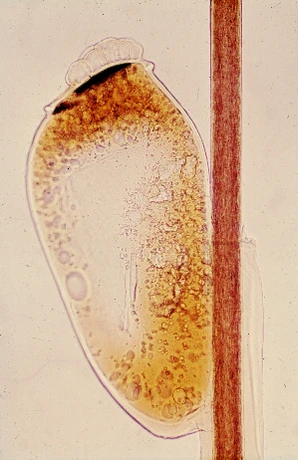 В запущенных случаях обильное серозно-гнойное отделяемое, секреторные выделения и яйца склеивают и спутывают волосы, образуя колтун (Trichom) — склеенная экссудатом масса спутанных волос, вшей, гнид, корок. Появляется неприятный запах от головы, при этом вши переходят к массовому отложению яиц[7].
