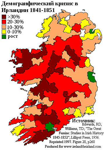 С начала XVIII века не прекращался приток ирландских эмигрантов в Великобританию и Америку. После голодной зимы 1845 года число эмигрантов увеличилось в десятки раз. К середине XIX века четверть населения городов восточного побережья США составляли ирландцы.