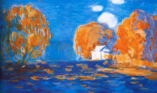 «Голуборозовцы» также расписывали московскую резиденцию Рябушинского «Чёрный лебедь», где хранилось большое количество их живописных и скульптурных произведений. В 1915 на вилле случился пожар, и богатое собрание Рябушинского погибло в огне[15].