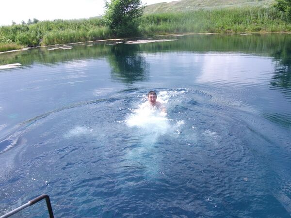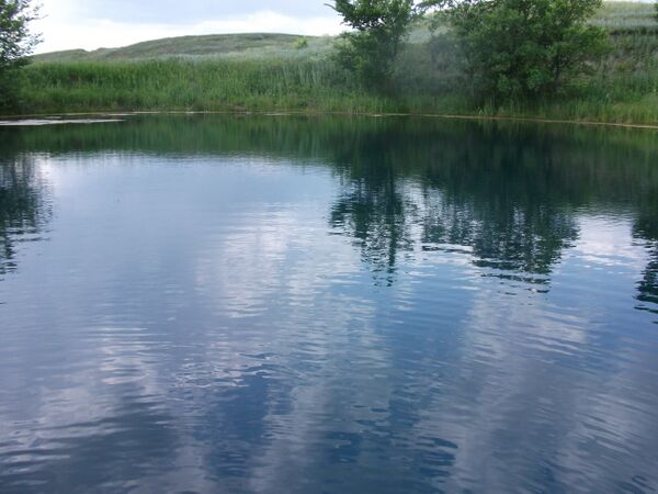 …Что за красота!.. Оно голубо от преломления лучей в этой светлой серной воде. Озеро или озерко — глубоко, говорят, до двадцати сажен и идёт вниз воронкой… Но ещё краше сама степь, и горы, и ковыль! Что за роскошь!..