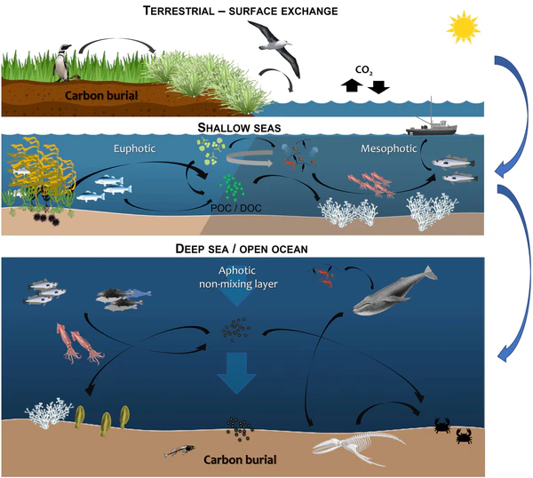 Термин «глубокий синий углерод» также используется и относится к хранению углерода в глубоководных водах океана[7].