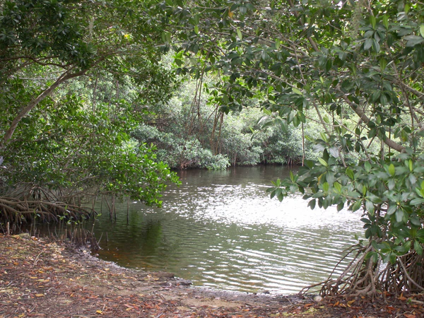 Плотины угрожают среде обитания, замедляя количество пресной воды, достигающей мангровых зарослей. Разрушение коралловых рифов также играет роль в здоровье среды обитания мангровых зарослей, поскольку рифы замедляют энергию волн до уровня, к которому мангровые заросли более терпимы.