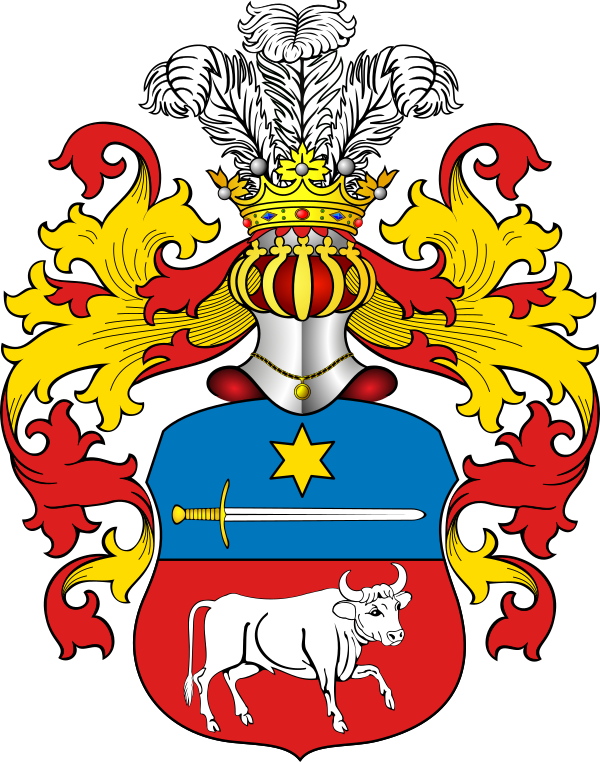Герб ВСЕМИЛОСТИВЕЙШЕ пожалован владельцу имения Калени в Варшавской Губернии Станиславу, и Докладчику Юридического Отделения Правительственной Комиссии Финансов и Казначейства Алоизию Шульцам, грамотою ГОСУДАРЯ ИМПЕРАТОРА И ЦАРЯ НИКОЛАЯ I, первому 1840 года Генваря 2 (14), а последнему 1842 года Мая 12 (24) дня, как сыновьям Юстуса а внукам Гаспария Шульца, который быв возведен Постановлением Сеймовым 1775 года в потомственное дворянство, не исходатайствовал себе в то время грамоты на оное.