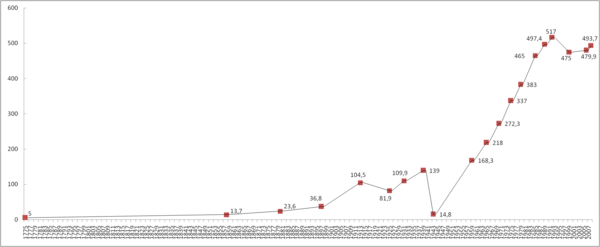 | 1991 | 4,3 | 68 | 9 | 0,070 |
