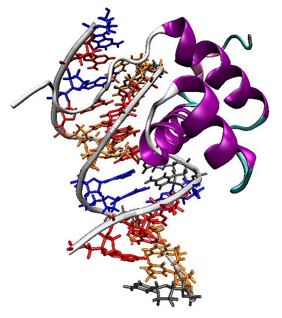 Гомеодомены могут связываться специфически и неспецифически с В-формой ДНК, при этом С-концевая часть узнает большую бороздку ДНК, а неструктурированная N-концевая часть соответствует малой бороздке. Спираль распознавания и внутриспиральные петли богаты остатками аргинина и лизина, которые образуют водородные связи с остовом ДНК. Белки, содержащие гомеодомен, имеют сродство к последовательности ДНК 5'-ATTA-3'; неспецифическое связывание осуществляется с значительно более низкой аффинностью.