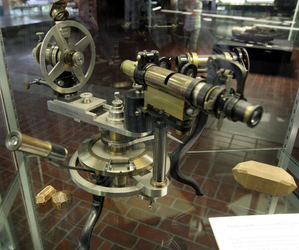 - кристалла же вокруг оси, перпендикулярной первой (у Фёдорова) или трубы с коллиматором вокруг оси, перпендикулярной первой (у Чапского).