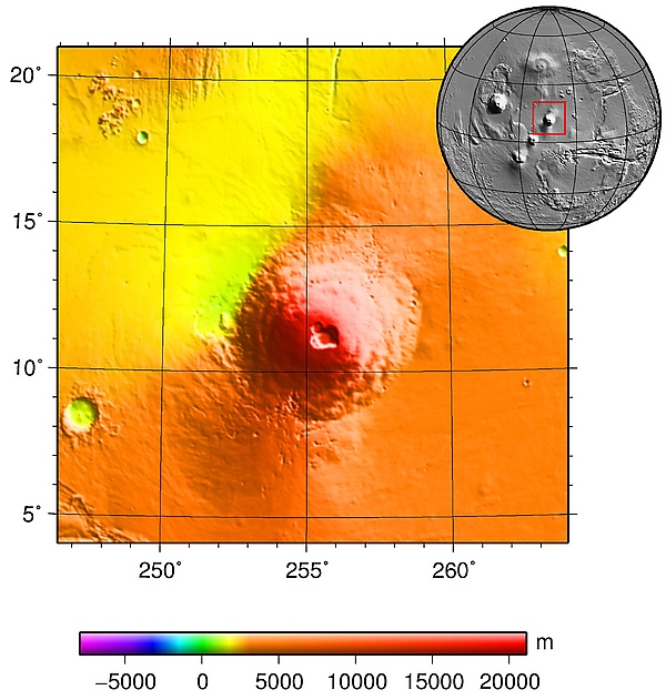 Гора Аскрийская считается одним из самых высоких вулканов на Марсе. Его вершина находится на высоте около 18 км над средним уровнем поверхности Марса[4], атмосферное давление на такой высоте составляет менее 0,8 мБар (80 Па). Вулкан имеет 460 км в диаметре[4], он был сформирован относительно недавними извержениями жидкой лавы.