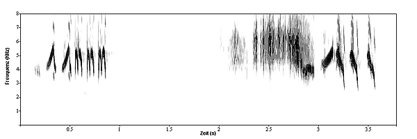 Кроме территориальной песни часто издаёт короткие свисты «фить» и щёлкающие «тек», нередко комбинируя их в разнообразные вариации.[4] Эти звуки используются при общении между птицами, во время возбуждения либо как сигнал тревоги. Громкое и резкое щёлканье «тек-тек» часто свидетельствует о приближении наземного хищника.[6]