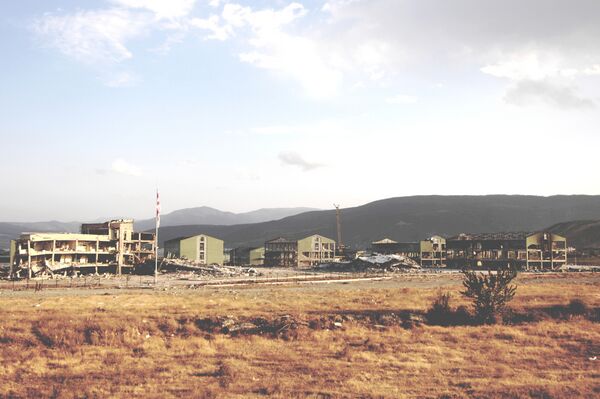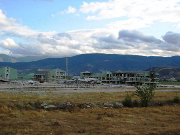 Потом мы шли по лестнице и входили во все дверные проёмы подряд — большинство дверей сорвало с петель. Квартира Джимшера, можно сказать, уцелела: в стареньком серванте даже осталась пара целеньких стаканов, а соседняя выгорела дотла. С балкона Джимшер указал на воинскую часть, которая и была целью авианалёта. Из десятка строений пострадало одно. Остальные три бомбы угодили в жилые дома. Сколько всего человек погибло, точно никто не знает, говорят, что 10-15[4].