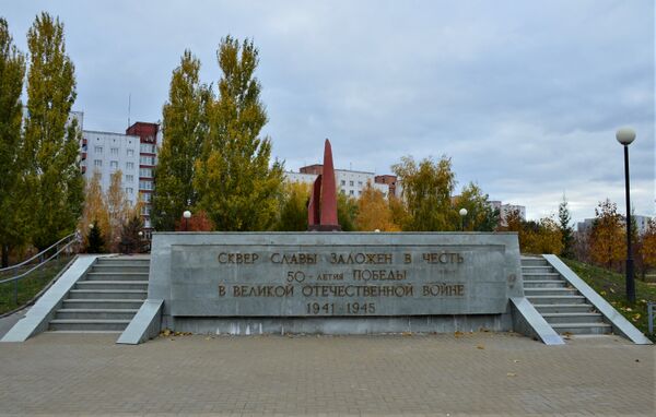 В 1995 году с открытием сквера Славы на его территории стал создаваться мемориальный комплекс, посвящённый Победе советского народа в Великой Отечественной войне (1941—1945). У главного входа в сквер возвели плоскую земляную насыпь высотой около 2 метров, с восточной стороны которой установили массивную памятную стелу с надписью: «СКВЕР СЛАВЫ ЗАЛОЖЕН В ЧЕСТЬ 50-летия ПОБЕДЫ В ВЕЛИКОЙ ОТЕЧЕСТВЕННОЙ ВОЙНЕ».