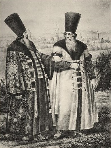 В локоть высотой, расширяющийся кверху конус с бархатным или парчовым верхом. Шапки горлатные обшивались лисьим, куньим или собольим мехом.