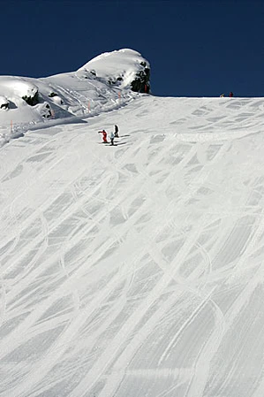 | Высокий | Трасса высокого уровня сложности, для хорошо подготовленных лыжников. Не все трассы «чёрного» уровня обрабатываются ратраком. Уровень сложности может сильно различаться от незначительно более сложных чем «красные» до чрезвычайно крутых и опасных. На французских курортах граница между «красным» и «чёрным» уровнями обычно выше. | |