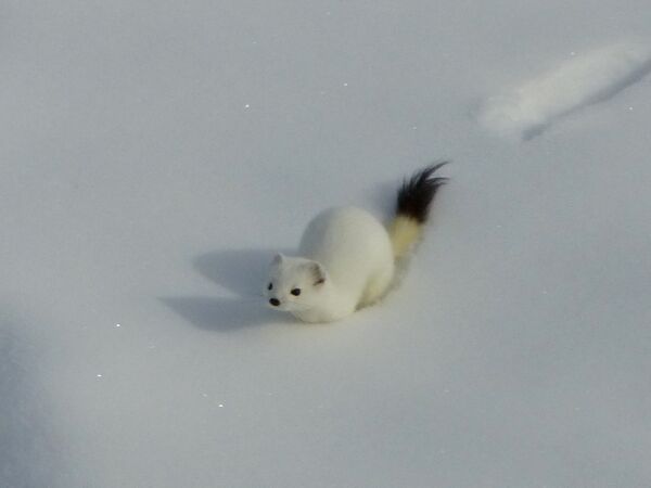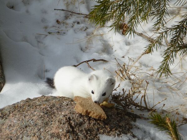 В сильные морозы горностай отсиживается в своём жилище или выходит на непродолжительное время