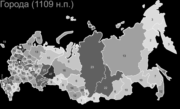 В 1990-х годах в Российской Федерации было свыше 1030 городов, в которых проживало 73 % населения, на 2012 год в 1092 городах России проживало 106,1 млн человек (74 % населения)[14].