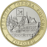 2 августа 2022 года Банк России выпустил памятную монету из недрагоценных металлов номиналом 10 рублей «г. Городец, Нижегородская область» серии «Древние города России»[46].