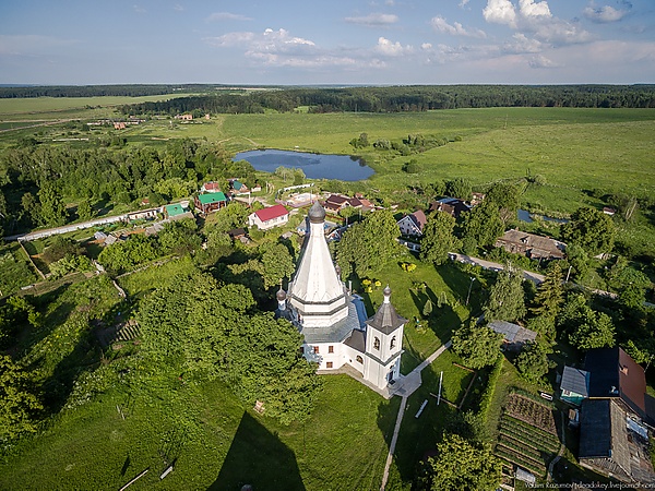Церковь выстроена из кирпича, оштукатурена. Объем церкви состоит из собственно церкви и колокольни, соединенных крытым переходом. Первоначально храм представлял собой шатровый восмерик, однако уже в XVII в. был пристроен подклет, а столб храма был окружен гульбищем, пристроено крыльцо, над ним была размещена звонница. Последняя в XIX в. была реконструирована в колокольню. В 1930-е годы церковь была закрыта, однако в 1991 году церковь была возвращена Русской православной церкви. [13] [14] Была проведена реконструкция, в ходе которой к храму была пристроена алтарная апсида, при этом была пробита сохранившаяся стена. Существует мнение, что такая реконструкция является вандальной [15]. В настоящее время в церкви ведутся регулярные богослужения.