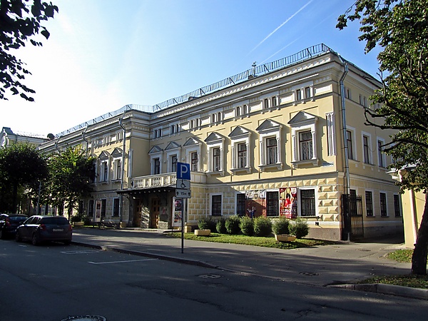 Проект нового здания городовой ратуши взамен старого, небольшого, был разработан И. А. Монигетти в 1859 году. Здание должно было быть перестроено из старого флигеля фабрики гербовых и ассигнационных бумаг (построен в 1785 году). Строительство завершено в октябре 1865 года. В 1902 году по проекту А. Р. Баха ратуша была расширена: выполнена пристройка, где разместился Малый Парадный зал. Ратуша была упразднена в 1918 году, в здании разместили городской дом культуры. Пострадавшее во время Великой Отечественной войны здание восстановили в городе одним из первых[3][4].