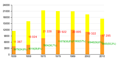 | Русские | 6 205 (54,5 %) | 10 018 (57,9 %) | |||