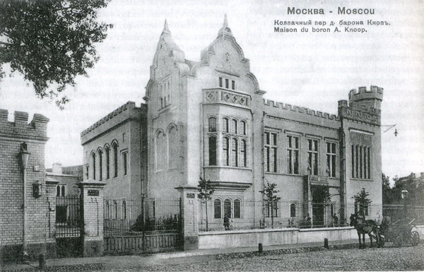 Усадьба в Колпачном переулке была построена в 1900 году по заказу Андрея (Иоганна-Андреаса) Львовича Кнопа, сына успешного предпринимателя Иоганна Людвига Кнопа, переехавшего в Россию из Англии в 1839 году как представителя компании De Jersey & Co. С 1846 года Кноп занялся импортом английских паровых машин для текстильных фабрик, в чём достиг больших успехов, а в 1852 году основал «Торговый дом Л. Кноп». В 1877 году император Александр II за развитие российско-английской торговли жаловал Кнопу баронский титул, а его сыновья Андреас (Андрей Львович) и Теодор (Фёдор Львович) приняли российское подданство. Дела Кнопа шли исключительно успешно: его предприятие имело почти монопольное положение на российском рынке, а продажа оборудования на условии получения паёв к концу XIX века сделала его совладельцем более 100 мануфактур. В те годы широкое распространение получила поговорка «Где церковь, там и поп, а где фабрика — там Кноп»[1][2].