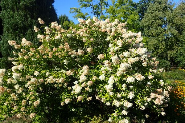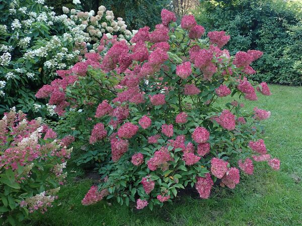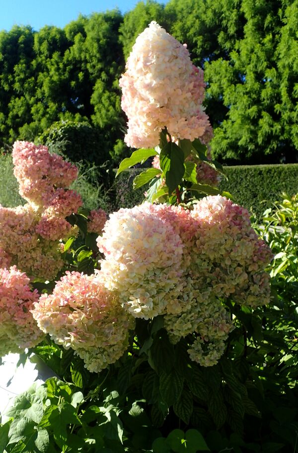 | Vanille Fraise | 200 | Тёмно-зелёные | Сливочно-белые → розовые → тёмно-красные | Крупные | Июль — сентябрь | -29 °C | Окраска зависит от условий. Побеги поникают под тяжестью соцветий длиной до 30 см. |