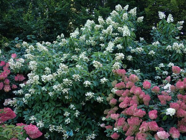 | Pink Diamond | 70—150 | Тёмно-зелёные | Кремово-белые → тёмно-розовые, почти красные | Длинные (до 30 см), смешанные | Июль — сентябрь | -34 °C | Яркая, контрастная окраска. Цветёт на побегах текущего года. Подходит для сухоцветов. |